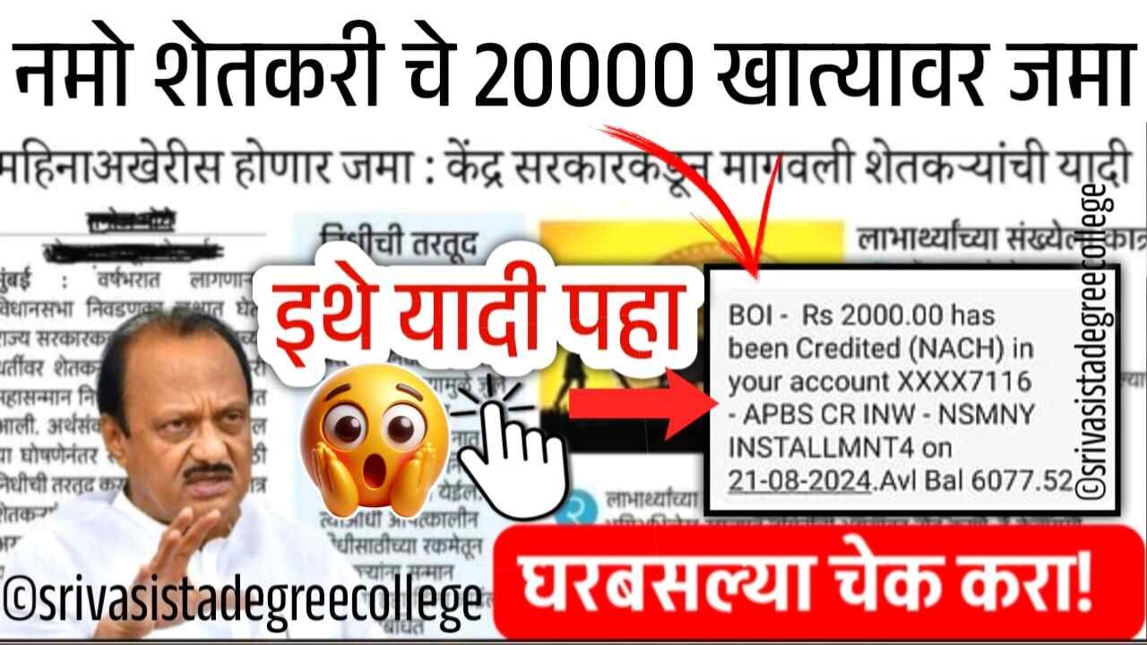 नमो शेतकरी योजनेचा 7 वा हप्ता 2000रुपये जमा झाला; यादी आली! लगेच स्टेटस चेक करा Namo Shetkari Yojana Hapta